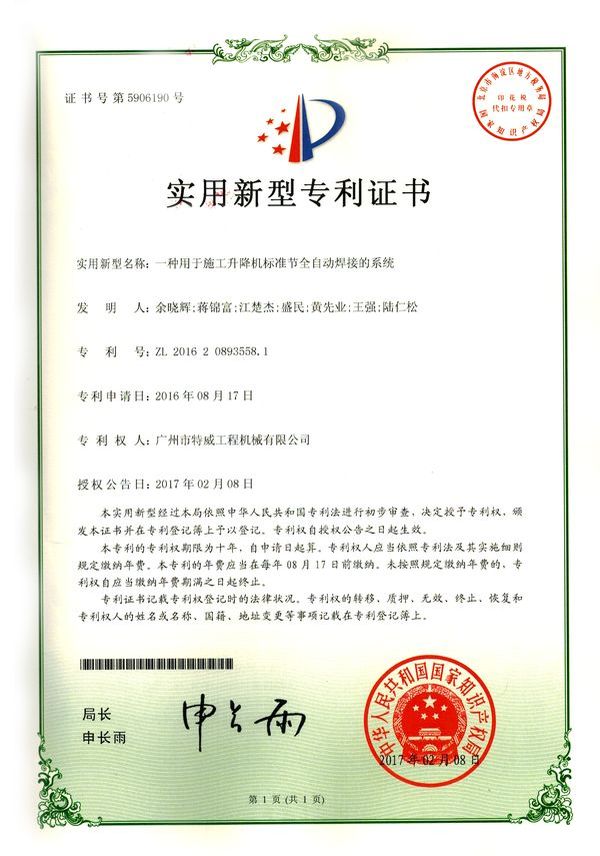 廣州市特威工程機械有限公司地處廣州市白云區(qū)神山鎮(zhèn),廣清高速神山出口附近,是一家施工升降機的專業(yè)生產(chǎn)廠家。公司成立于2011年,占地100000多平方米,注冊資金1060萬元,現(xiàn)有員工300余人其中工程技術人員33人,高級技術人員52人。
